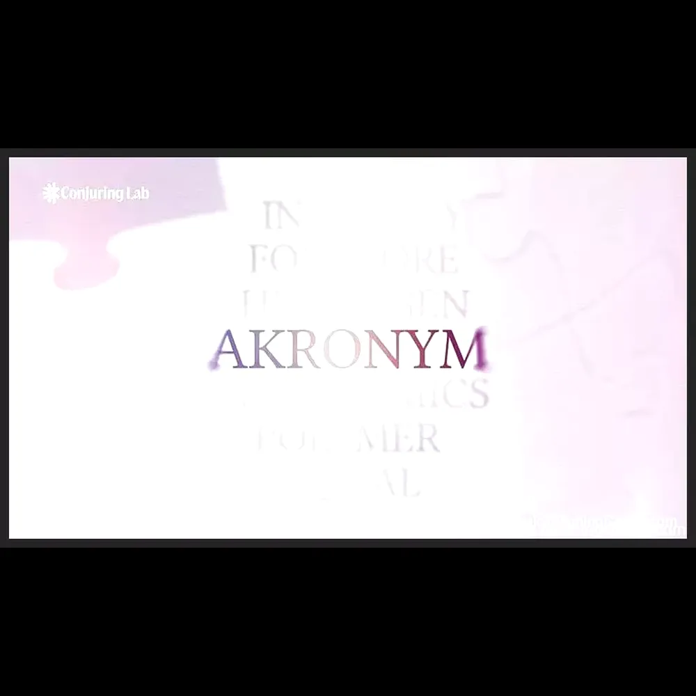 This product provides access to the comprehensive Akronym by Conjuring Lab tutorial, teaching you the full method and performance nuances of this incredible digital word revelation system. No physical product is shipped; this is an instructional video/system access only.
