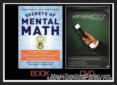 Dr. Benjamin shares all of his secrets of doing mental math faster than a calculator in hisMathemagicscourse. The course consists of three DVDs and an audio disk, along with an autographed copy of his book,Secrets of Mental Math: The Mathemagician’s Guide to Lightning Calculation and Amazing Math Tricks. (The book is co-written with Michael Shermer and has a foreword by Bill Nye, the Science Guy.) The cost of the course is $49 (or $39 without the book) plus tax, shipping, and handling. Credit card and Paypal orders are accepted.