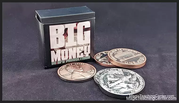 Behold! Big Money by Anthony Miller & Ryan Bliss! This jumbo coin set vanishes mediocrity. Copper & silver create illusions for close-up & stage! A magician’s must-have tool!