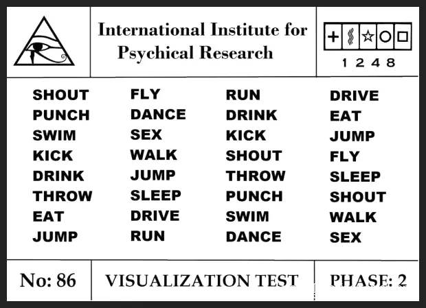 1. Mentalist hands a card containing different words.