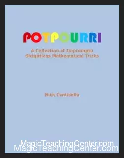 Behold! Nick Conticello’s “Potpourri” unveils impromptu mathematical magic. Witness sleightless wonders & amaze your friends! A must-have collection for the discerning magician seeking pure astonishment!