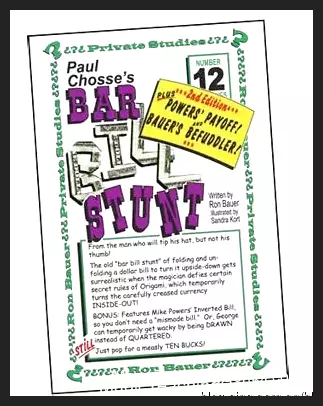 Behold! Ron Bauer’s 12 Bar Bill Stunt! Amaze your audience as currency transforms before their very eyes! Learn this incredible secret now! A must-have for every magician.