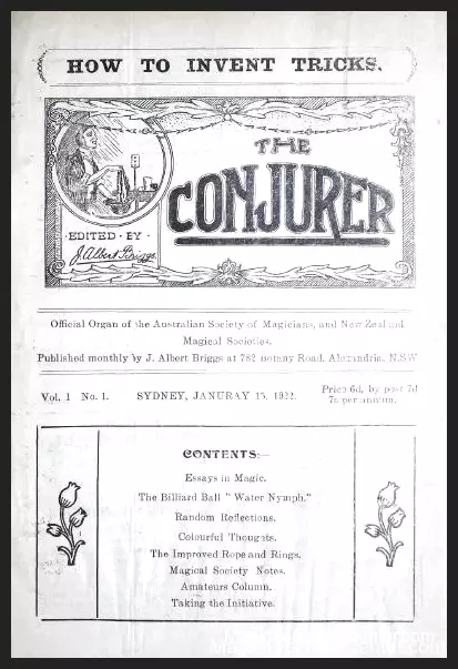 The Conjurer was the Official Organ of the Australian Society of Magicians and New Zealand Magical Societies published monthly by J. Albert Briggs